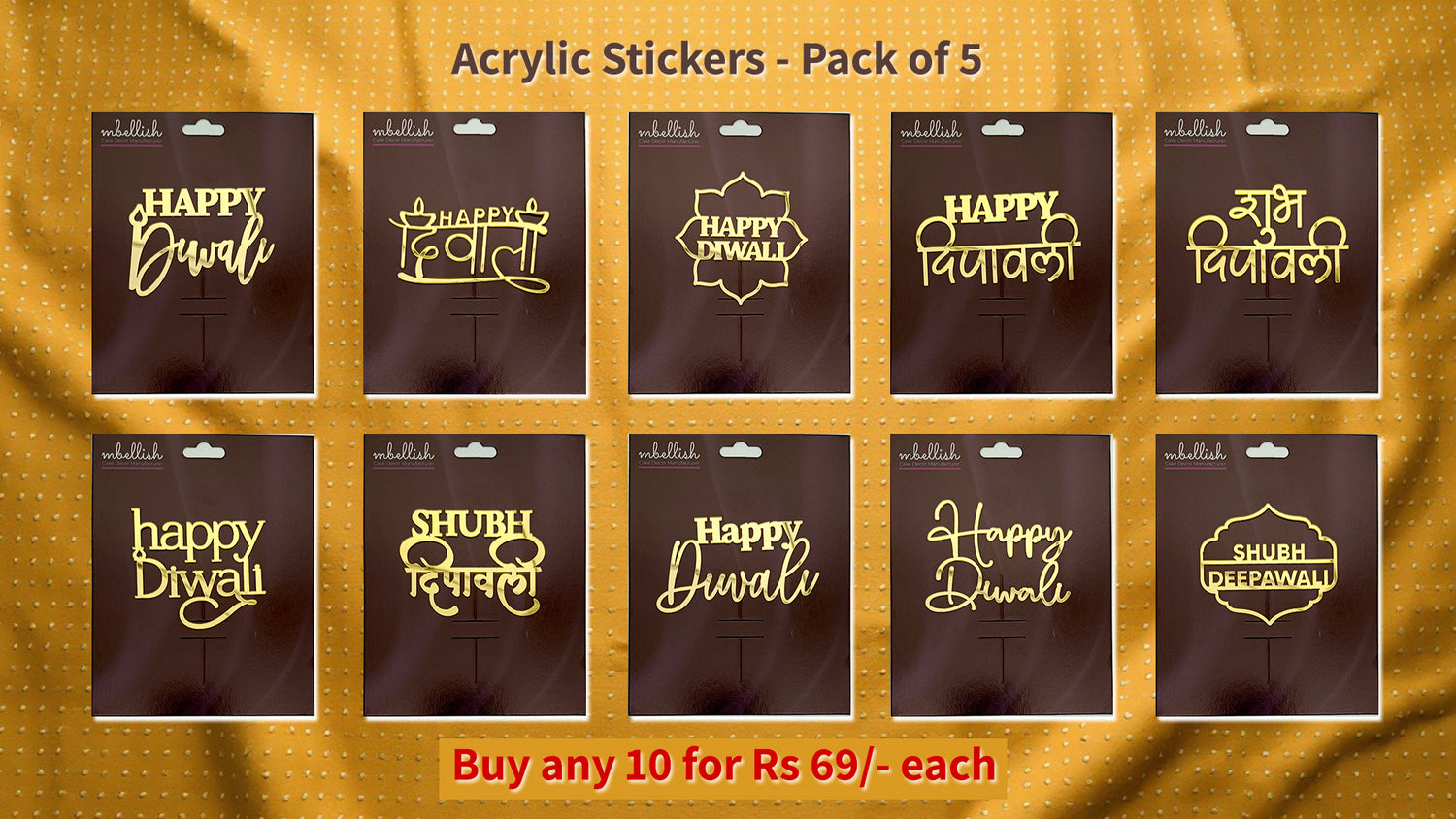 Happy Diwali Acrylic Sticker, Size -Small, Pack of 5, Sku - SS10