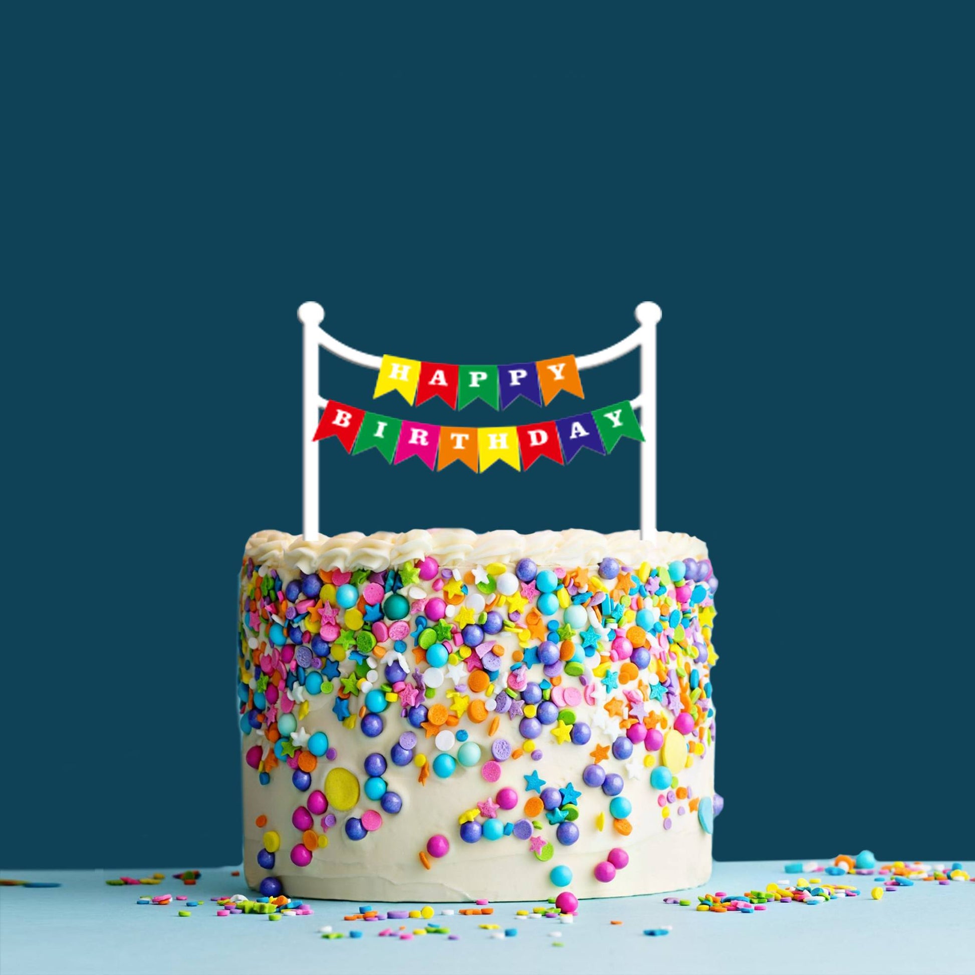 Happy Birthday Acrylic Cake Topper Bunting, Size - Medium, SKU-TR10499