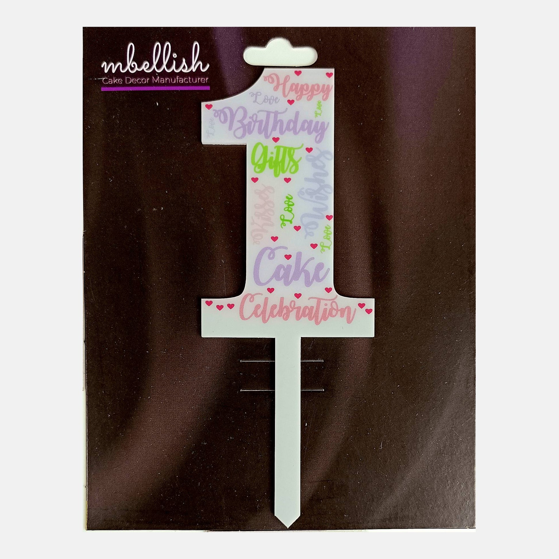 One First Birthday Acrylic Cake Topper, Size - Medium, SKU-TR10503