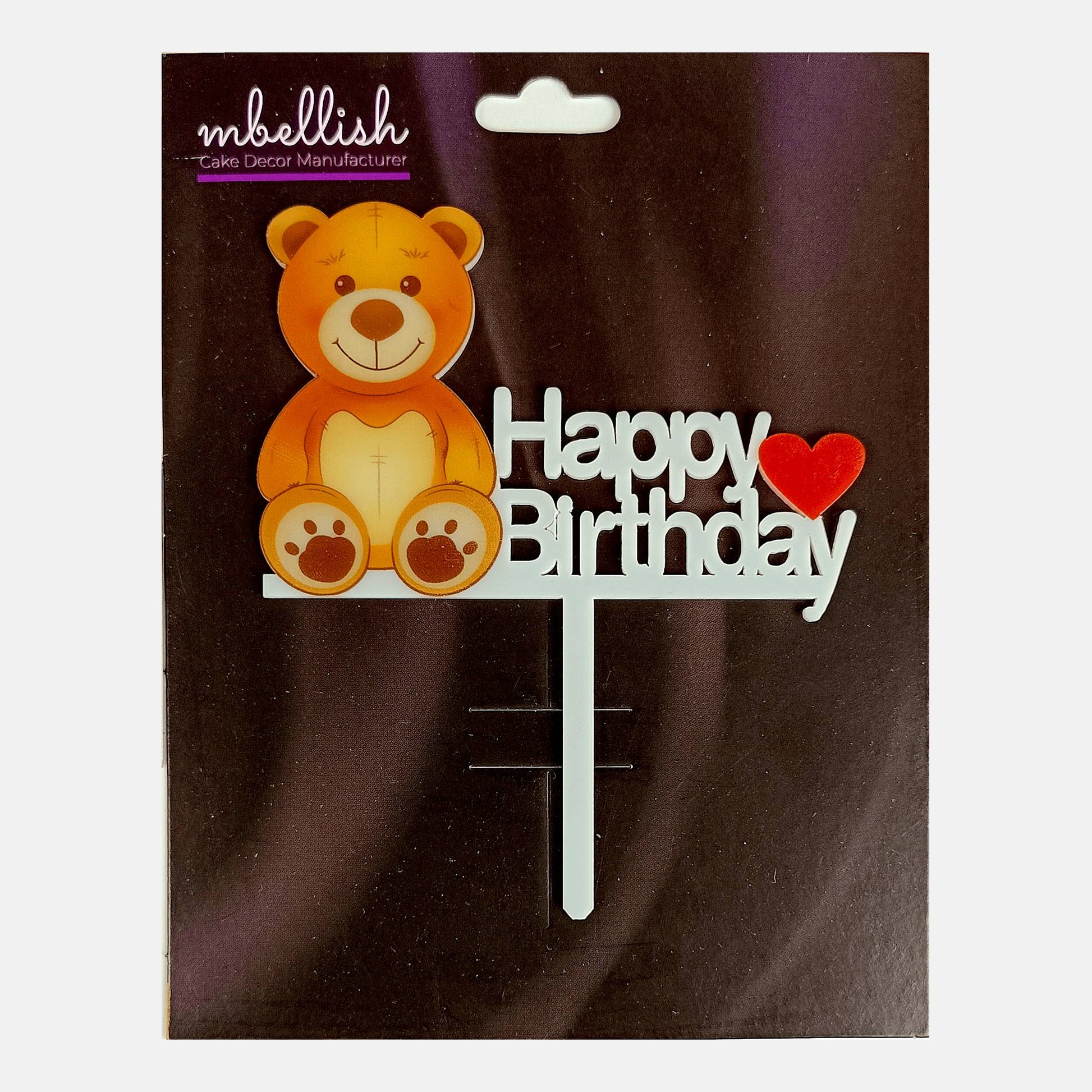 Happy Birthday Acrylic Cake Topper Teddy Bear, Size - Medium, SKU-TR10508