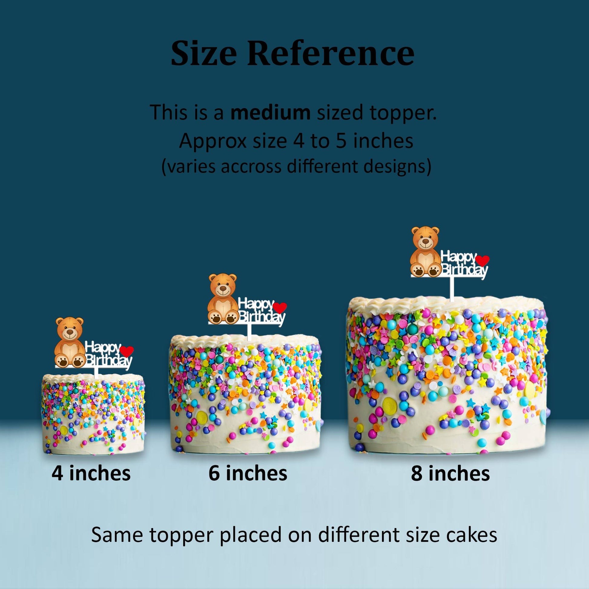 Perfectly sized - The topper is sized to look perfect on the particular cake size. Do check our sizing chart before purchase.