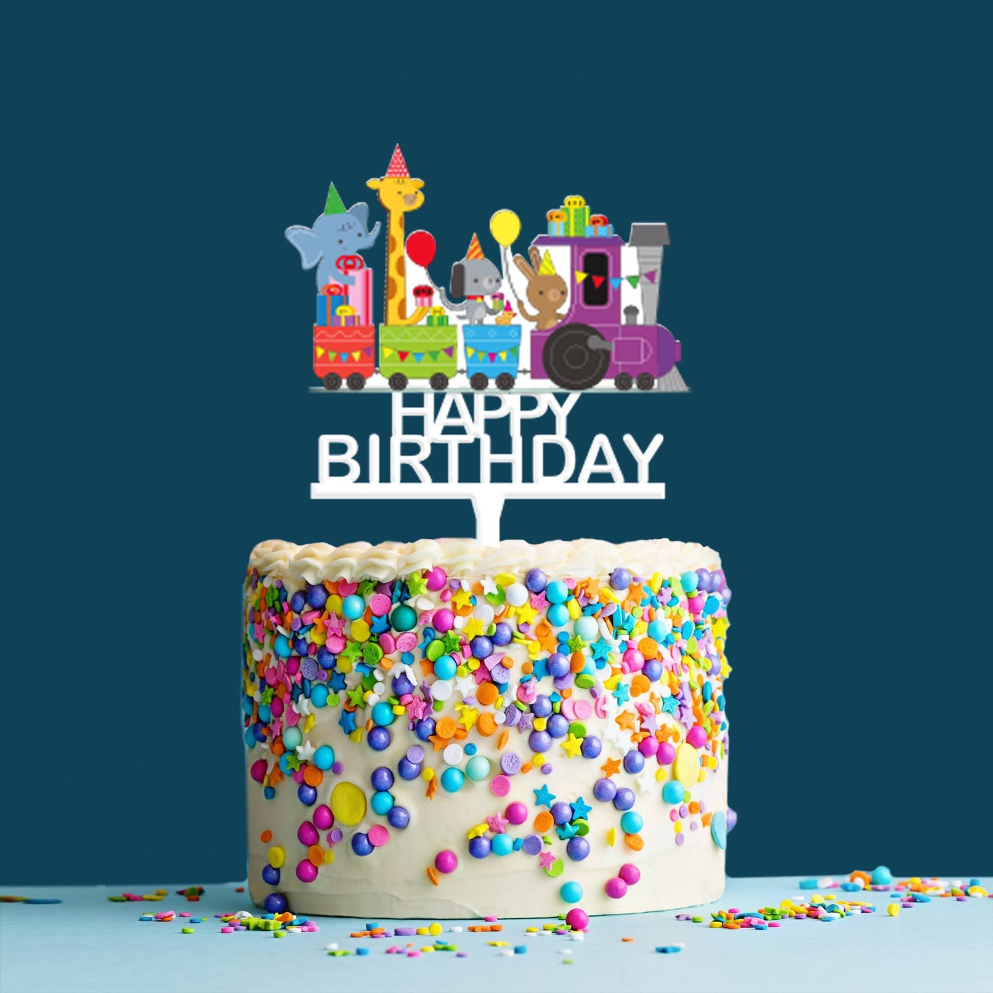 Happy Birthday Acrylic Cake Topper Toy Train, Size - Medium, SKU-TR10515