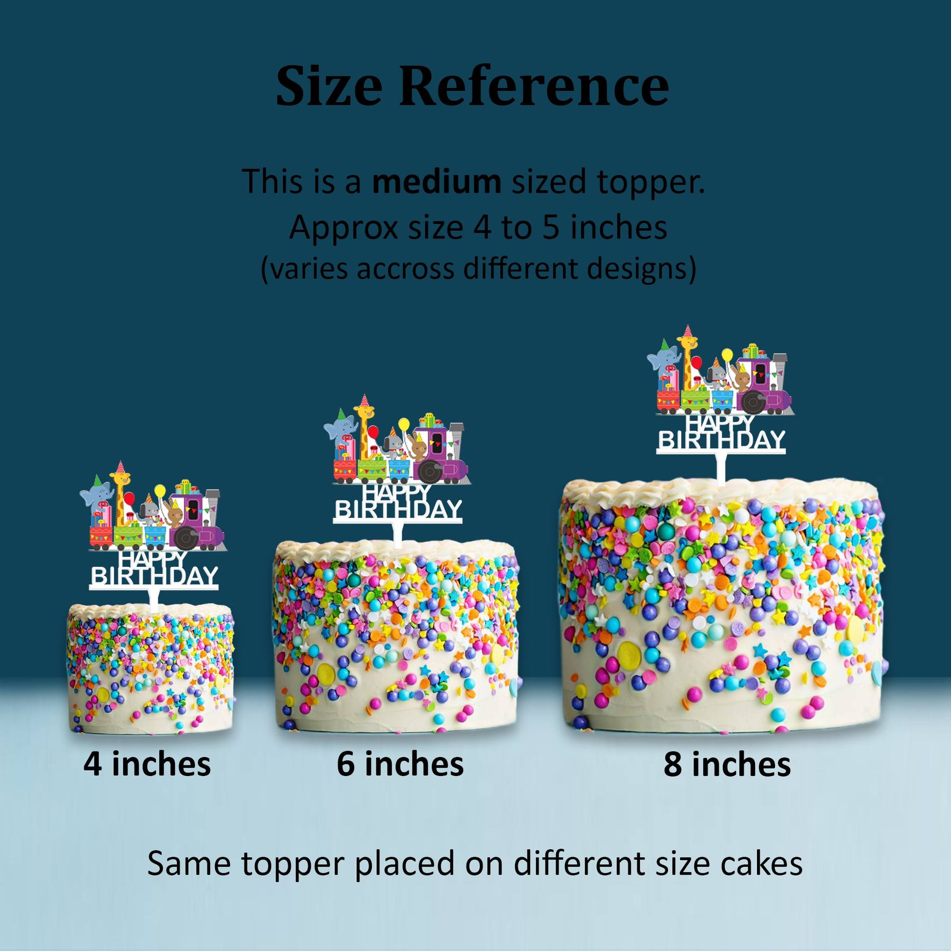 Perfectly sized - The topper is sized to look perfect on the particular cake size. Do check our sizing chart before purchase.