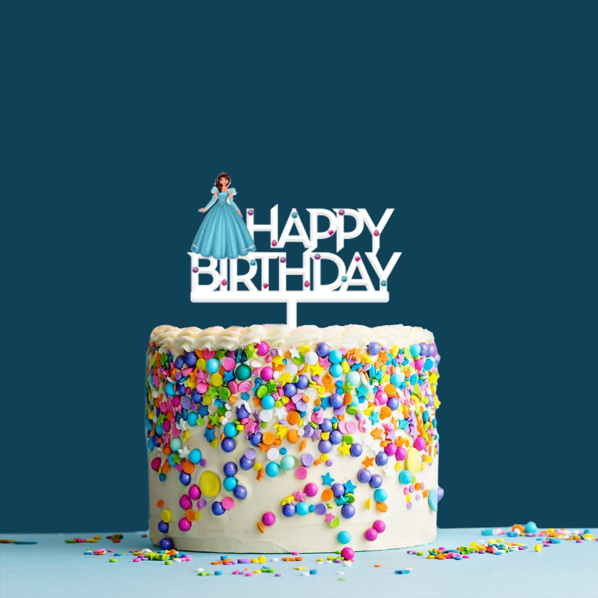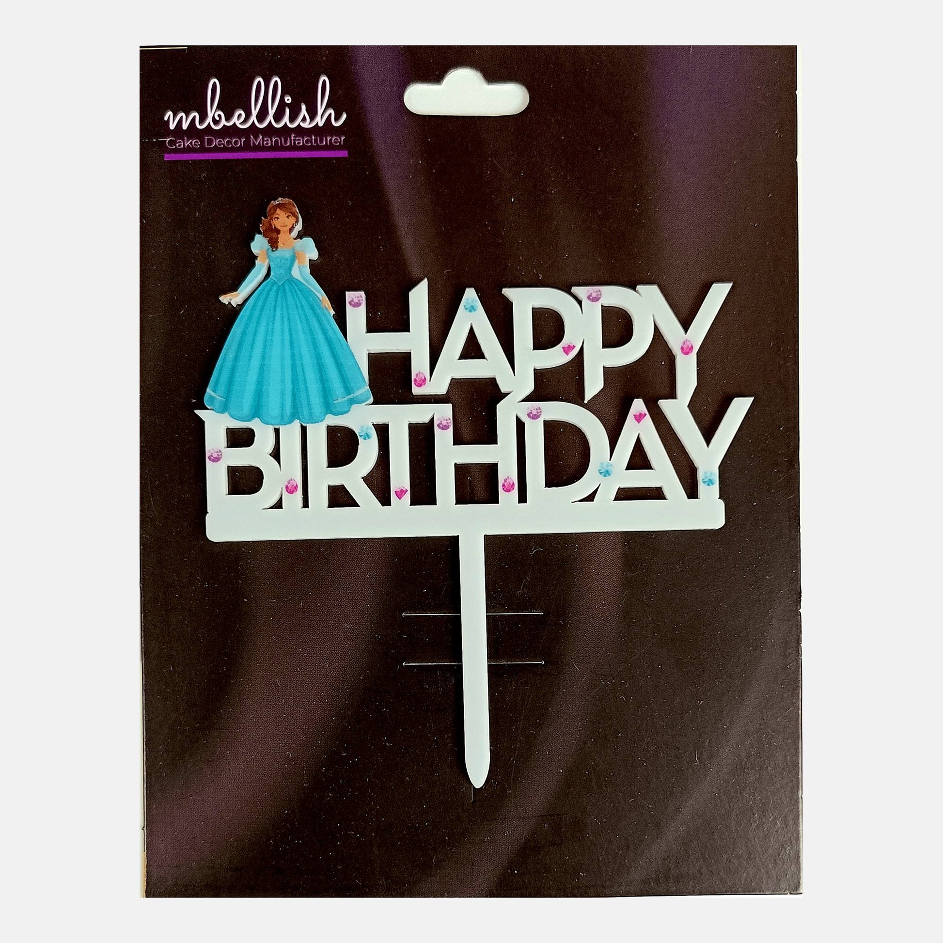 Happy Birthday Acrylic Cake Topper Princess, Size - Medium, SKU-TR10517