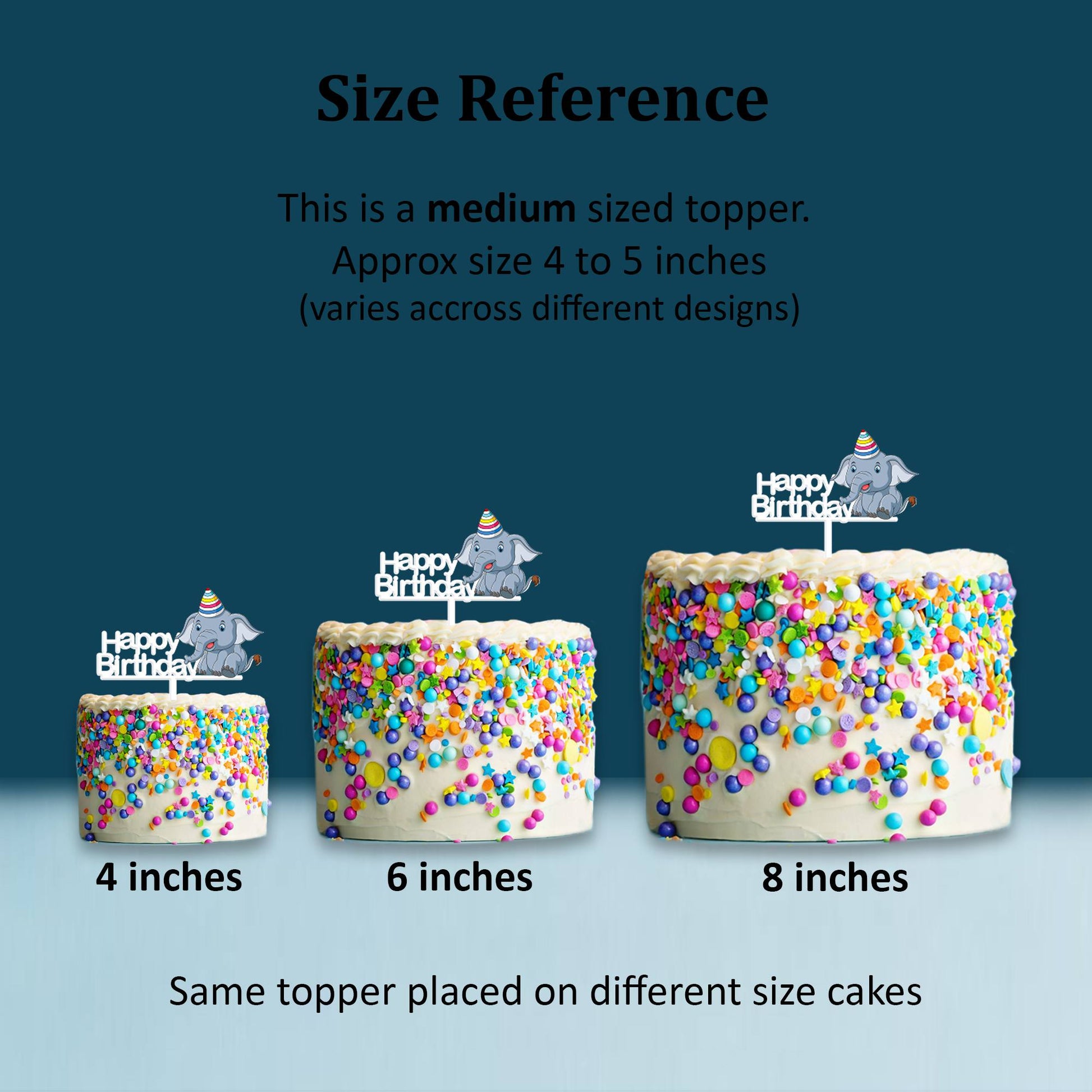Perfectly sized - The topper is sized to look perfect on the particular cake size. Do check our sizing chart before purchase.