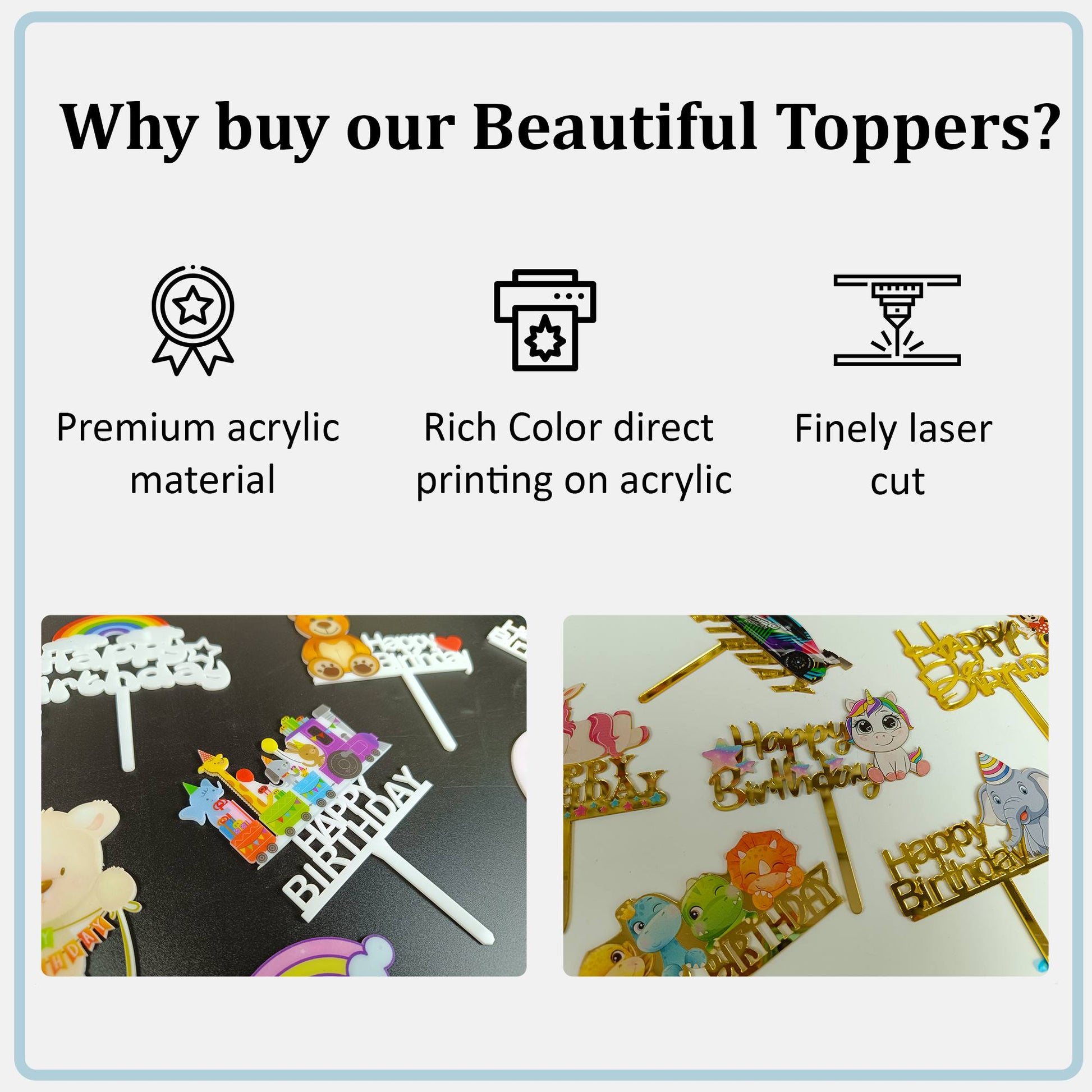 Premium Acrylic - Our toppers are made from best quality acrylic available.